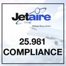 Airplanes equipped with a Flammability Reduction Means (FRM) approved by the FAA as compliant with the Fuel Tank Flammability Reduction (FTFR) requirements of 14 CFR 25.981(b) or 26.33(c)(1) are exempt from the new Airworthiness Directives, as are airplanes equipped with an Ignition Mitigation Means (IMM) approved by the FAA as compliant with the FTFR requirements of 14 CFR 25.981(c) or 26.33(c)(2). INVICTA is compliant with Ignition Mitigation Means (IMM) and Flammability Reduction Means (FRM) regulations and is the more cost effective and available fuel mitigation system when compared to the Boeing solutions. Jetaire certifies that INVICTA is compliant with the Airworthiness Directives and they hold the Supplemental Type Certificates as follows: