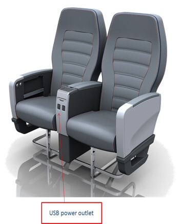 A solid, low maintenance, in seat power supply system that is interpretive to the passenger. The system can supply up to 2.1 amps or for USB-C 60 Watts and can adapt to amongst others Apple iPad devices.