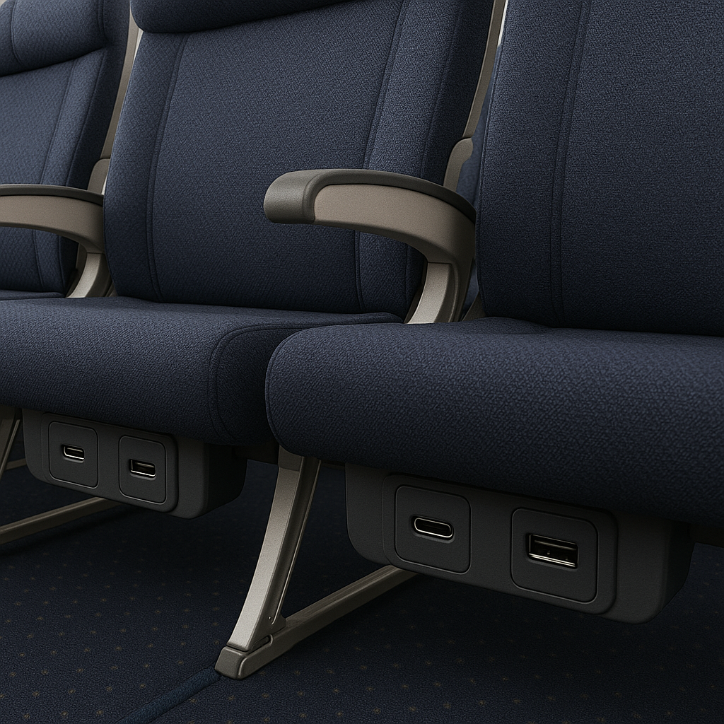 As USB-C is now becoming the standard Fokker Services can also provide an USB-C 60 watt per seat solution.