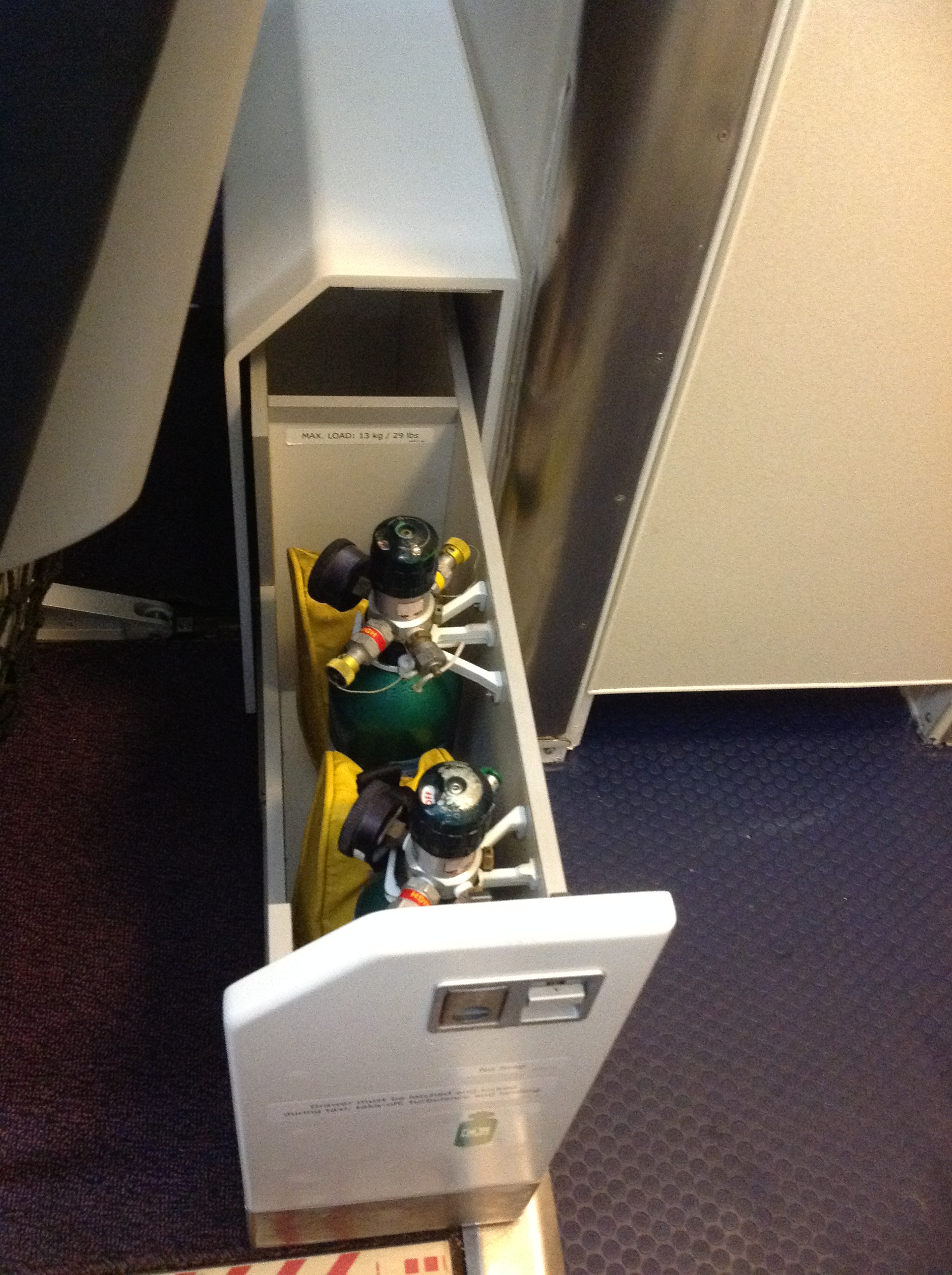 The doghouse can be used to install oxygen bottle, first aid kits of for example an on board wheel chair. The access is easy by means of the drawer. It uses spaces that are normally not used. It gives the opportunity to use the luggage space for passenger bagage.