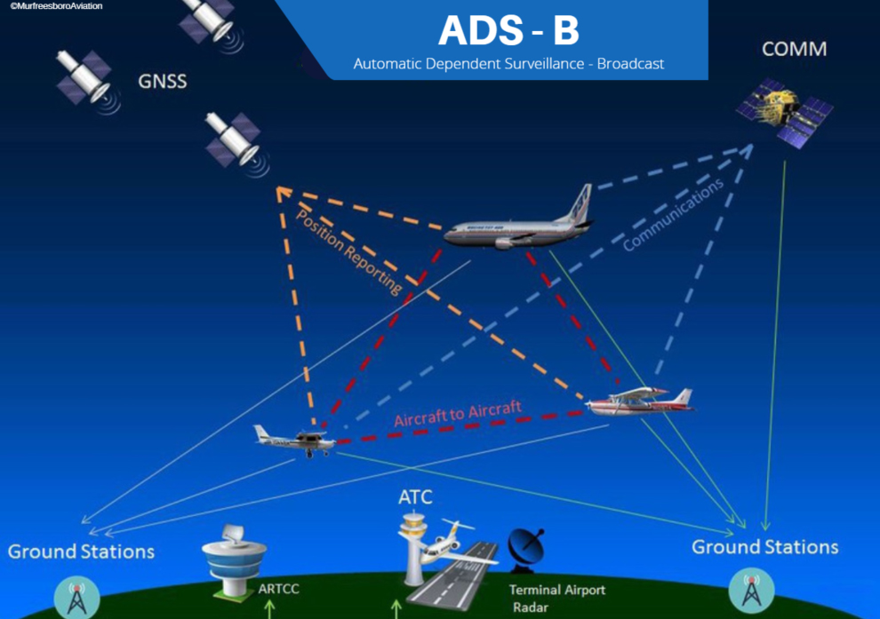 ADS-B, standing for “Automatic Dependant Surveillance – Broadcast”, is the replacement and augmentation of radar-based aircraft surveillance systems. With ADS-B, the surveillance of aircraft does no longer rely on radar ground stations, but on airborne GPS receivers. Aircraft equipped with ADS-B broadcast their precise position and velocity data, as well as altitude and supportive information automatically, without pilot input, to ATC on ground (ADS-B Out) or to other aircraft (ADS-B In).