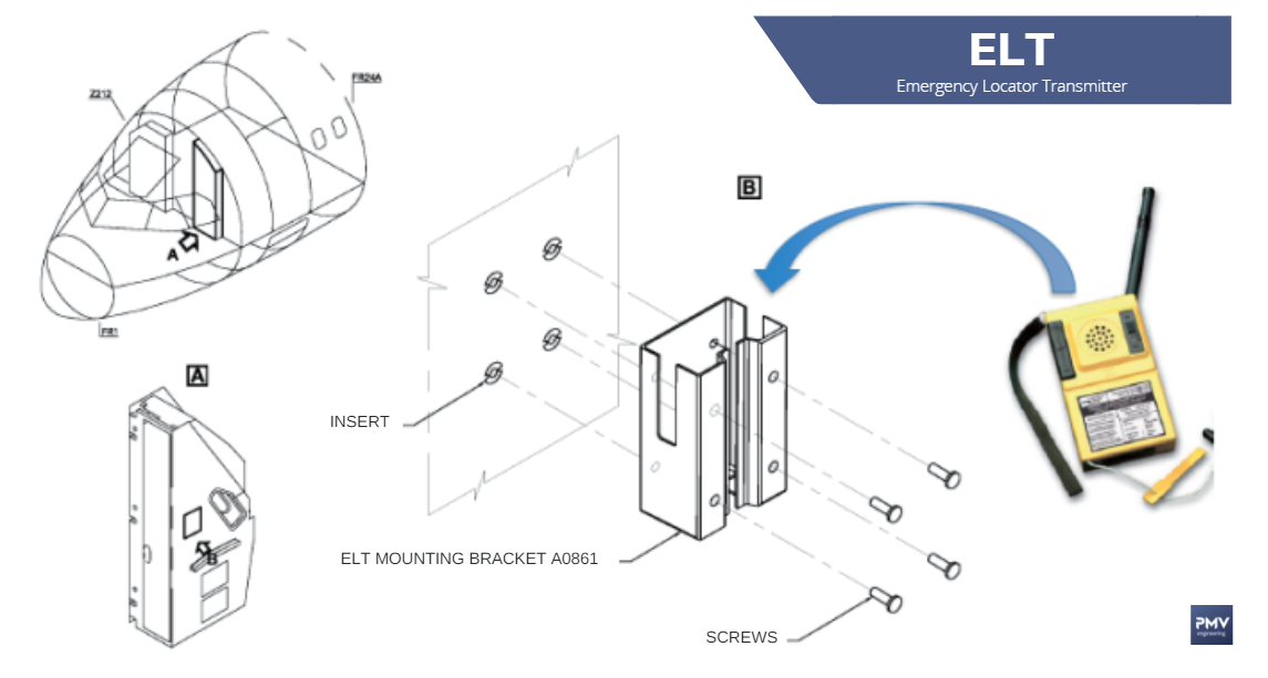PMV Engineering improved its EASA STC 10062280 at Rev1 for the installation of a TECHTEST survival ELT on Airbus A320 family aircraft, providing customer with 2 approved locations, one in the aft cabin and now one in the cockpit.